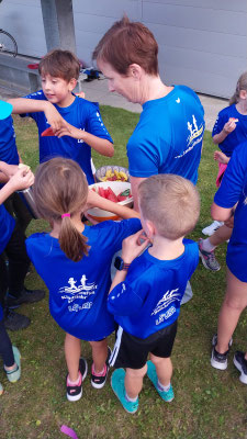 Wow, wir sind so richtig geflasht! Heuer haben sich 45 Kinder zum Kinderlauftreff angemeldet. Das Interesse unserer laufbegeisterten Kinder ist mindestens genau so groß wie der Spaß beim Training. Auch wenn die Sommerhitze gleich beim ersten Training immens war, haben alle Kinder und TrainerInnen tapfer durchgehalten. Und wie man sieht, ist auch heuer die Obstjause danach eines der Highlights.